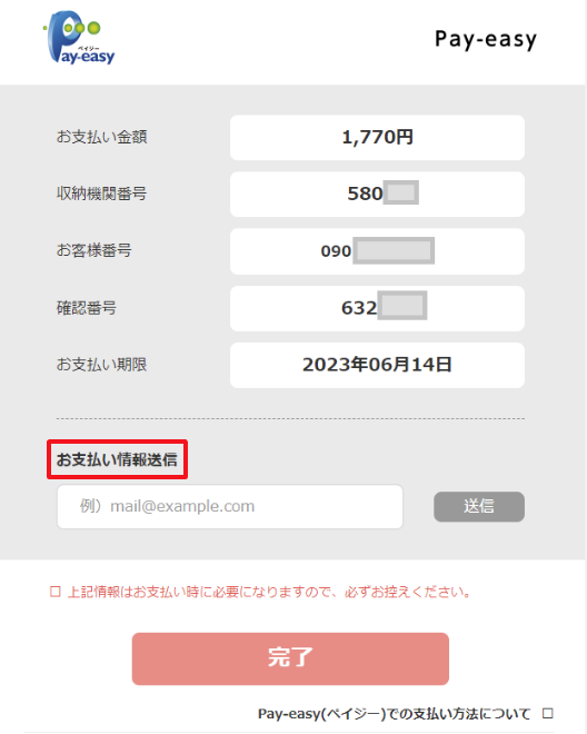 5.表示されたお支払い情報をもとにペイジー決済(ネットバンキングやATMなど)でお支払いください。