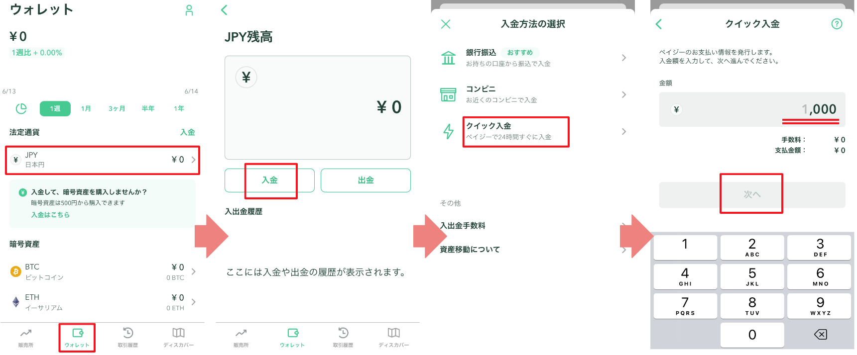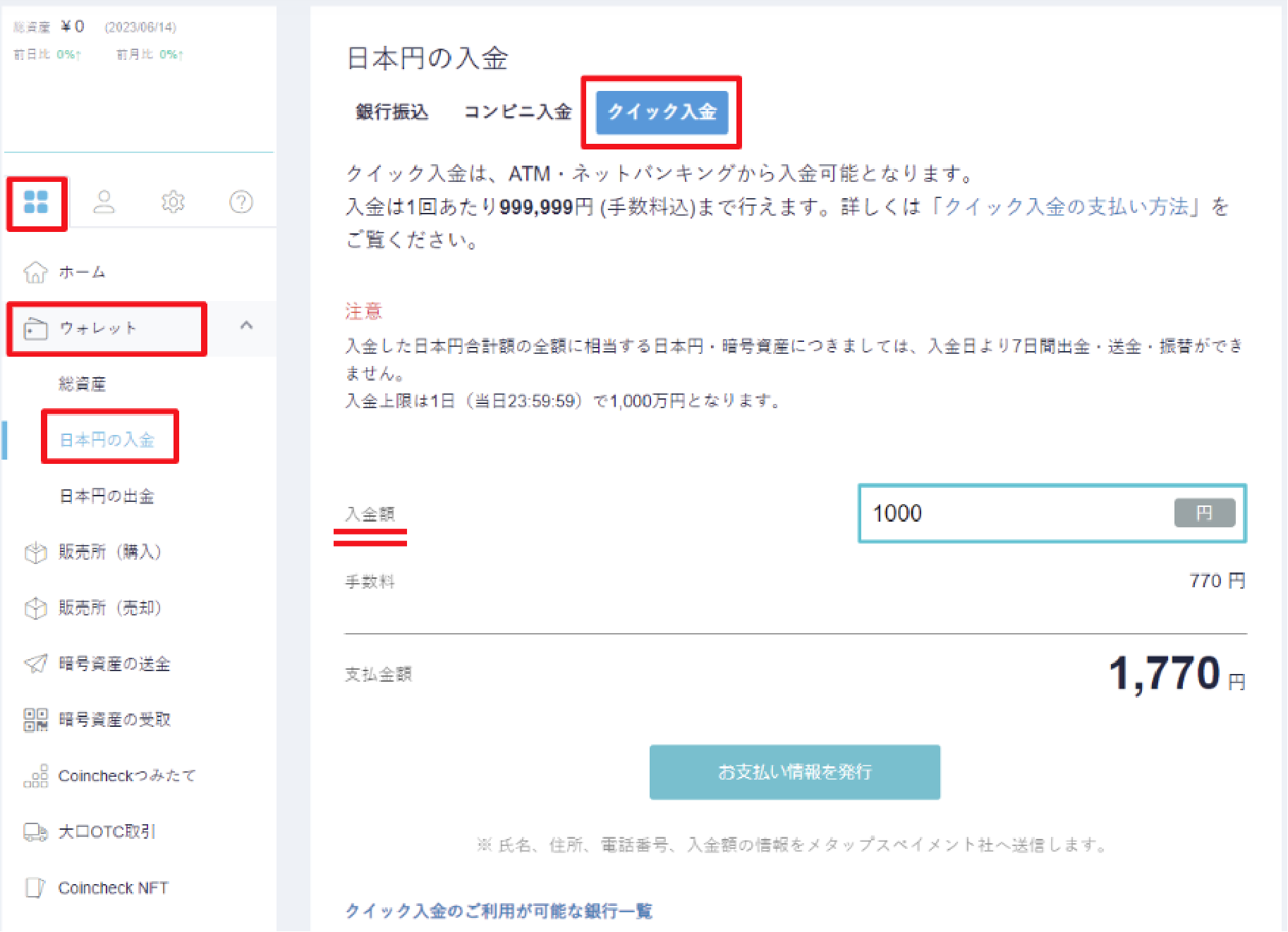 クイック入金での入金方法