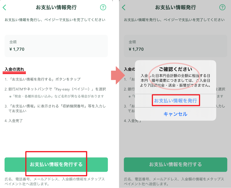 4.希望入金額を入力し、「お支払い情報を発行」をクリック/タップします。