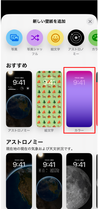 2.「新しい壁紙を追加」の中から、好みの壁紙を探しタップする。
