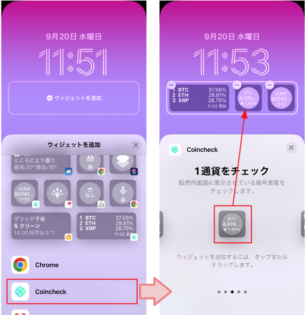 ロック画面にウィジェットを表示する方法