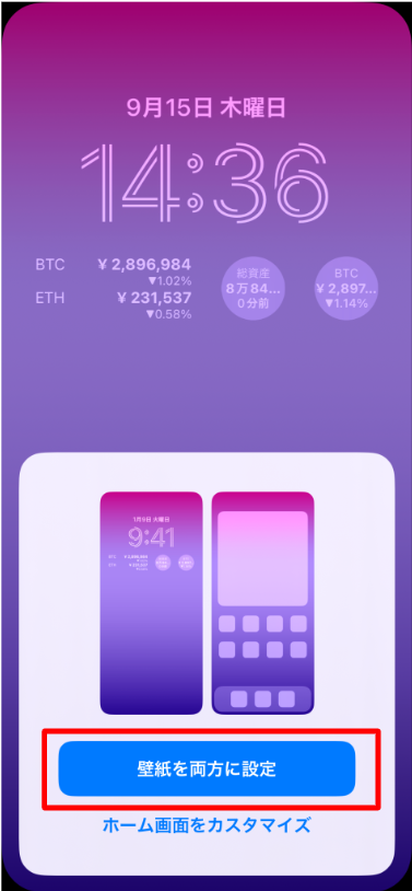 6.「壁紙を両方に設定」が表示された場合は、タップすると設定は完了。