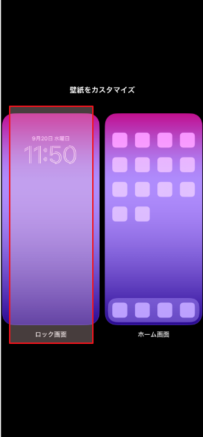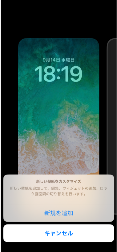 「カスタマイズ」をタップした際、新しい壁紙の追加を促すメニューが表示される場合があります。
