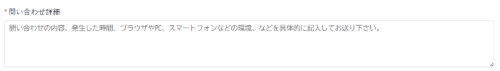 問い合わせ詳細への入力