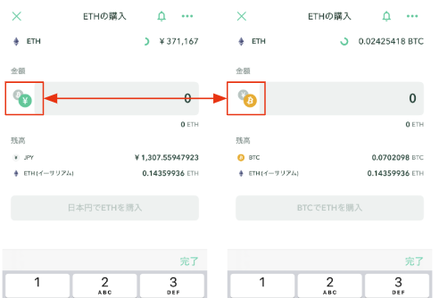 なお、ビットコイン(BTC)は、日本円での購入のみ可能です。