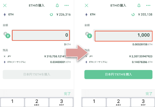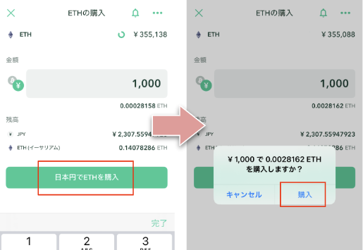 2.購入したい暗号資産(ここではETH)をタブから選択します。