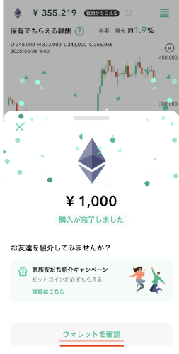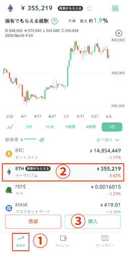Coincheckアプリ(iOS / Android)で、販売所にて暗号資産を購入する手順を説明します。
