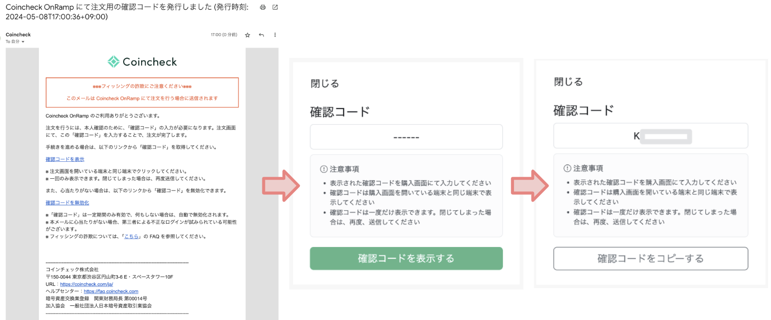 1.注文内容(購入数量や通貨の種別など)には問題がないか確認する。