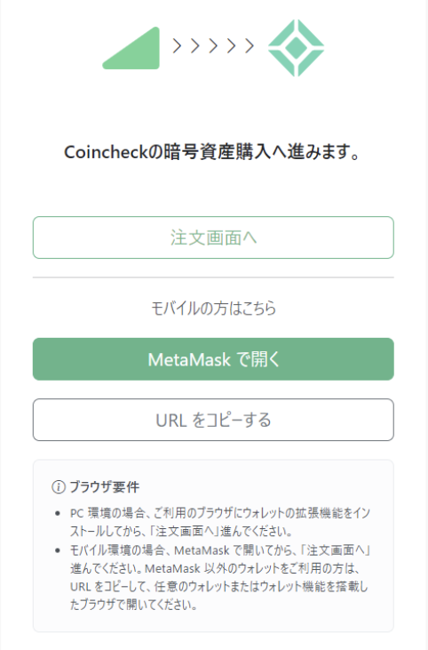 step2. Coincheck OnRamp と入金先ウォレットの接続