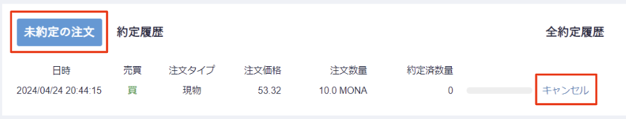 未約定の買い・売り注文をキャンセルする方法について教えてください