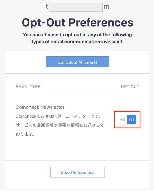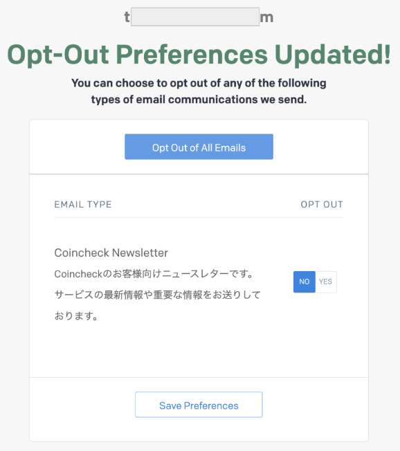 4.「Save Preferences」をクリック/タップして「Opt-Out Preferences Updated!」と表示されば完了です。「No」になるとメールが届くようになります。