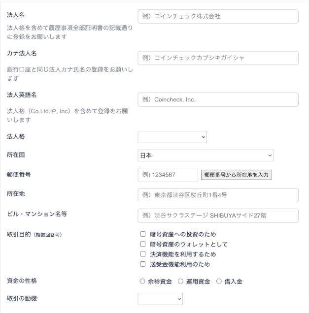 Coincheckで法人アカウントの新規開設する方法を説明します。