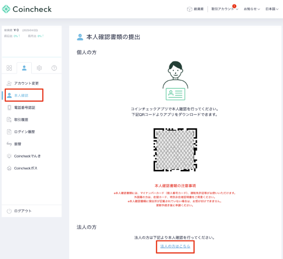 - 本人確認書類の提出先(個人または法人)を選択して提出すると、以降個人・法人の種別変更はできません。
