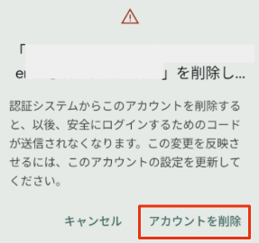 4. 確認画面が表示されるので、「アカウントを削除」をタップして完了です。