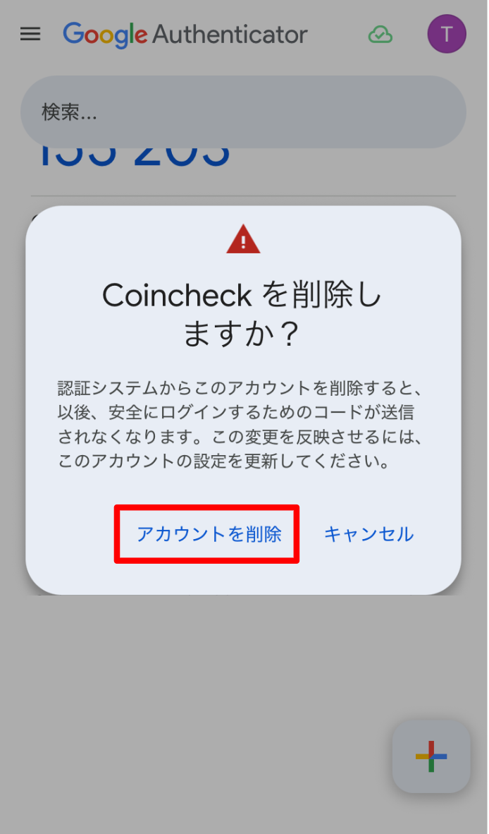 削除する前に、そのパスコードを使用しているCoincheckのアカウント上で2段階認証を無効にしてください。無効にする前に削除すると、そのサービスにログインできなくなる場合があります。