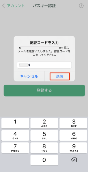パスキー登録時に届いた認証コードを入力したあと、「登録する」ボタンは押せません。