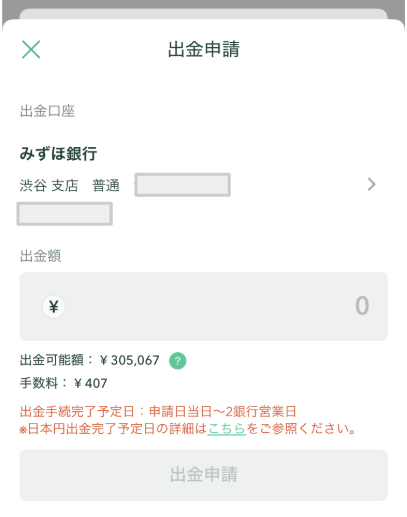 【アプリ】登録済みの銀行口座へ日本円を出金する方法