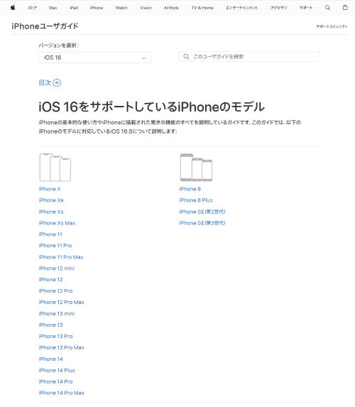 - 例えば、Appleですと以下のようにサポートしている各OSに対して対応している端末を案内するヘルプページがあります。